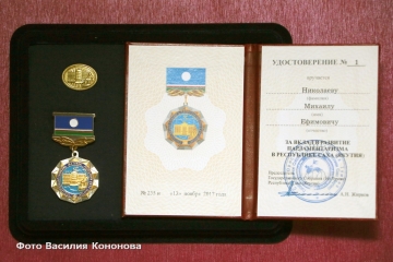 Саха Өрөспүүбүлүкэтин Ил Түмэнин Бэрэссэдээтэлэ Александр Жирков Саха Өрөспүүбүлүкэтин парламентаризмын сайдыытыгар кылаатын иһин” саҥа бэлиэ бастакы нүөмэрдээх дастабырыанньатын Сакха Өрөспүүбүлүкэтин бастакы Президенэ Михаил Николаев бу дьыл сэтинньи 13 күнүгэр 80 сааһын бэлиэтиир үбүлүөйүгэр туттарбыта.