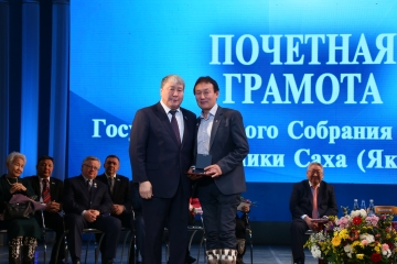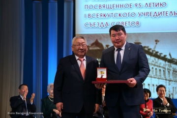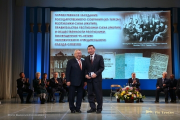 Саха Өрөспүүбүлүкэтин Ил Дархана Егор Борисов бүгүн өрөспүүбүлүкэ уопсастыбаннаһа XX үйэ биир бэлиэ түгэнин бэлиэтиир. Саха сирин 95 сыл анараа өттүгэр автономияны ылынан бэйэтэ съезд ыыппыта. Бу съезкэ ырыппыт, көрбүт боппуруостара күн бүгүҥҥэ диэри сытыытык тураллар диэн эттэ. “1980-90, 2000 сыллардаахха өрөспүүбүлүкэ интэриэһин көмүскээбит, турууласпыт депутаттары кытта бииргэ алтыһан үлэлээбиппэр дьылҕабар махтанабын. Барыгытын кэлэн иһэр саҥа дьылынан эҕэрдэлиибин. Ситиһиилэри, үөрүүнү, дьолу баҕарабын”, - диэн түмүктээтэ. Егор Афанасьевич өрөспүүбүлүкэ сайдыытыгар кылааттарын киллэрбит дьоҥҥо наҕараадалары туттарда.