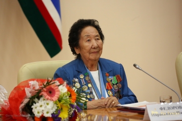 В Зале Республики Дома Правительства состоялось торжественное собрание общественности, посвященное 90-летию Федоровой Парасковьи Павловны – кавалера орденов Ленина, Трудового Красного Знамени, Полярной Звезды, заслуженного работника сельского хозяйства РФ, заслуженного работника народного хозяйства Якутской АССР, Почетного гражданина г. Якутска, «Лучшей женщины – труженицы XX века», легендарного директора совхоза «Хатасский».