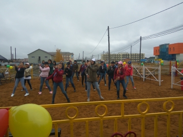 В этом году праздничные мероприятия начались с открытия детской площадки по адресу улица Ленина 23/1 в микрорайоне «Кэскил» рядом с новостройками, возведенными по программе переселения граждан из ветхого и аварийного жилья.