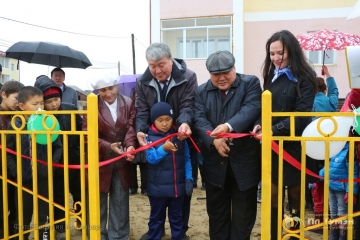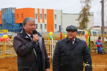 От имени жителей руководитель туелбэ «Кэскил» Екатерина Герасимова и ученик 1 класса Мюрюнской средней школы Владик Березкин выразили благодарность Василию Аммосову, спонсорам, строителям за подарок детям микрорайона.