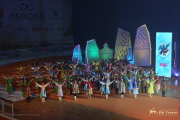 Торжественное мероприятие началось с красочных представлений, которые рассказали об истории становления нашей многонациональной Якутии, о том, как в долине Туймаада был основан наш город Якутск. Творческие ансамбли республики представили хореографические композиции, начиная от времен Тыгына до наших дней. На большой сцене спорткомплекса «Триумф» перед зрителями промелькнули события прихода казаков, начала XX века, советского Якутска, а также шествие колонны бессмертного полка героев Великой Отечественной войны.