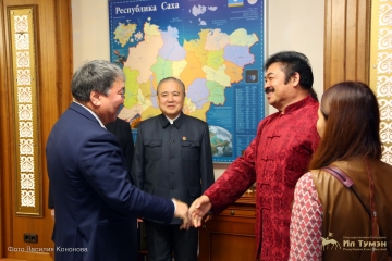 Председатель Государственного Собрания (Ил Тумэн) напомнил, что в декабре 2015 года в г. Пекине в рамках Фестиваля российской культуры в Китае – 2015 проведены Дни культуры Республики Саха (Якутия) «Искусство Земли Олонхо» в Китайской Народной Республике, в которых приняли участие лучшие творческие профессиональные коллективы Якутии. Театр Олонхо Республики Саха (Якутия) представил жителям и гостям Пекина классическую китайскую драму «Пионовая беседка» на якутском языке. Театр Куньцюй, являющийся шедевром ЮНЕСКО, поставил на китайском языке спектакль на основе олонхо «Светлоликая Туйаарыма Куо». Лучшие образцы якутского изобразительного искусства в коллекции, посвященной национальному героическому эпосу Олонхо, из более 40 произведений живописи и графики якутских художников выставлены в Университете Цинхуа.