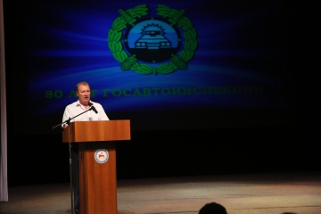 Мероприятие началось с праздничного видеопоздравления Президента Российской Федерации Владимира Путина. Поздравив всех тех, кто обеспечивал и обеспечивает порядок на дорогах со знаменательным юбилеем – с 80-летием образования Государственной инспекции дорожного движения, он в своей речи отметил следующее: «Во второй половине 30-х годов XX века, по сути, с нуля сформировалась система управления дорожным движением. Сегодня особые слова благодарности ветеранам и всем тем, кто в годы Великой Отечественной войны помогал бесперебойному движению на фронт боевой техники, отправки в тыл раненых и приближал победу над врагом, а в послевоенный период обеспечивал безопасность на дорогах нашей огромной страны. Мы чтим память сотрудников автоинспекции, погибших при исполнении служебного долга. Тех, кто и в годы войны и в мирное время защищал закон, интересы государства, безопасность граждан».
