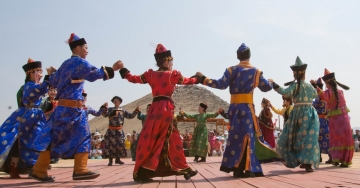 Кульминацией праздника стал грандиозный обрядовый круговой танец Ёхор вокруг горы Ехэ Ёрд.