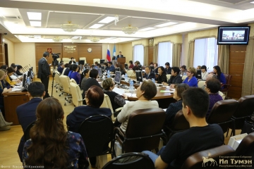 Председатель профильного комитета Государственного Собрания (Ил Тумэн) Республики Саха (Якутия) по науке, образованию, культуре, средствам массовой информации и делам общественных организаций Антонина Григорьева открыла работу «круглого стола»: «В нашей республике третий год реализуется проект, инициированный первым Президентом Республики Саха (Якутия) Михаилом Ефимовичем Николаевым, «Музыка для всех». Сегодня «круглый стол» посвящается теме «Проект «Музыка для всех» в Республике Саха (Якутия) - как основа раннего музыкального воспитания детей». Прошу учесть тот факт, что подходит к завершению Год дошкольного образования, объявленный у нас в республике. Именно ранний возраст является благодатной почвой для привития азов музыкального образования и формирования личности с помощью музыкального воспитания. Сегодня в зале Ил Тумэна присутствует очень уважаемая и авторитетная аудитория: народные депутаты республики, представители органов исполнительной власти, директоры музыкальных школ, музыкальные руководители дошкольных образовательных организаций, преподавательский состав среднего и высшего профессионального образования». С особым удовольствием Антонина Афанасьевна приветствовала в стенах парламента Якутии человека, делающего очень много для разработки учебно-методического, научного сопровождения инновационного движения в нашей республике – музыкального образования детей Абдуллина Эдуарда Борисовича, профессора Московского государственного педагогического университета им. В.И. Ленина. Председатель профильного комитета Госсобрания Якутии подчеркнула: «Сегодня мы будем говорить о том, насколько эффективно реализуется данный проект, об имеющихся проблемах и обсудить какие усилия нам необходимо приложить для обеспечения доступности, охвата как можно большего количества детей музыкальным образованием, обеспечению музыкальными инструментами и т.д.».
