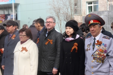 Главными участники митинга стали школьники, в почетном карауле выстроились студенты Мирнинского регионального технического колледжа, воспитанники военно-патриотического клуба «Барс». В торжественной церемонии приняли участие народный депутат Якутии Гульсум Бейсембаева, депутаты и представители районной и городской власти, военкомата, АК «АЛРОСА».