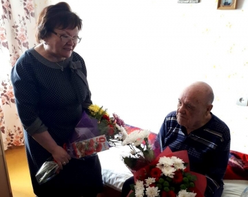 В тот же день Гульсум Бейсембаева в составе группы из представителей администрации города и района, управления соцзащиты, военкомата, АК «АЛРОСА» посетила участников войны, которые по состоянию здоровья не могут принять участие в праздничных мероприятиях. Мирнинские ветераны войны Вера Ивановна Дубик, Евгения Васильевна Писарева, Михаил Арсентьевич Жилкин, Александра Алексеевна Лившиц получили поздравления и материальную помощь. После обеда работники районной администрации и Совета ветеранов выехали в поселок Светлый, поздравить проживающего там ветерана Антонину Георгиевну Чудину. К сожалению, годы берут свое, на сегодня в Мирнинском районе проживают всего пятеро участников войны.