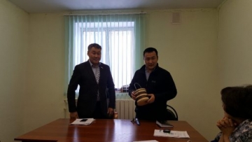 Как бы в подтверждение своих слов депутат вручил главе Немюгюнского наслега Науму Устинову свой новогодний подарок в виде изделия народного промысла — туесок для сбора ягод.