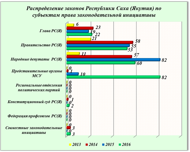 В 2016 году три законодательные инициативы Государственного Собрания (Ил Тумэн) приняты в окончательном чтении: