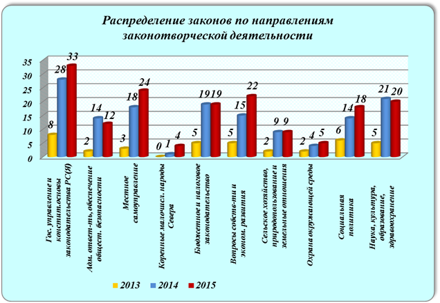 В сфере государственного управления и конституционных основ законодательства Республики Саха (Якутия)принято 58 нормативных правовых актов, из них 33 закона.