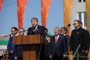 Сэрии уонна тыыл бэтэрээннэригэр эҕэрдэтин этэригэр өрөспүүбүлүкэ киин куоратын баһылыга Айсен Николаев ыам йын 9 күнэ күүтүүлээхтэн күндү, кэтэһиилээхтэн кэрэ, үөрүүлээхтэн үрдүк суолталаах күн буоларын бэлиэтээтэ. “Биһиги бүгүн Улуу Кыайыы бырааһынньыгар муһуннубут. Бу күн омугуттан, сааһыттан, политическай көрүүтүттэн, үлэтиттэн тутулуга суох биһигини бука барыбытын сомоҕолуур. Кэмнэммэт улахан сыананан кэлбит бу Кыайыы бырааһынньыга биһиэхэ өрүү баар буолуо туруоҕа. Тоҕо диэтэххэ, Кыайыы биһиги 27 мөлүйүөн биир дойдулаахтарбыт олоҕунан толуктанан кэлбитэ. Киһи аймах историятыгар саамай ынырык сэрии 1418 күннээх-түүн устатыгар барбыта. Ол иһигэр ити Кыайыыны биһиги биир дойдулаахтарбыт эмиэ уһансыбыттара”, -- диэтэ Айсен Николаев.