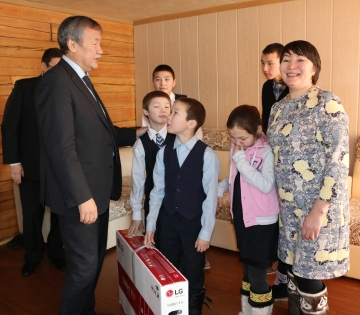 Особо приятным моментом поездки стало посещение депутатом многодетной приемной семьи. Здесь воспитываются шестеро детей школьного возраста. Семья на днях переселилась в новый дом. При его строительстве родители постарались, чтобы детям здесь было просторно, уютно и комфортно. По словам мамы, Софьи Петровны, многое еще предстоит доделать, но все очень рады новоселью. В связи с таким событием Иван Андреев пожелал семье благополучия, здоровья, успешной учебы и вручил новоселам телевизор, который тут же по общему решению был определен в комнату для девочек.