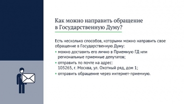 Прямое взаимодействие с гражданами — одно из основных направлений деятельности депутатов Государственной Думы. В результате рассмотрения обращений удается решить актуальные для людей вопросы и проблемы. Рассказываем, как правильно составить обращение и какими способами его можно направить.