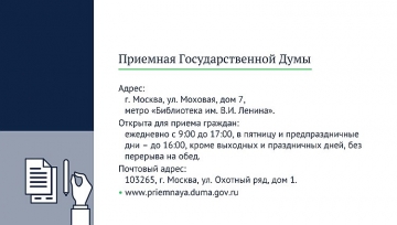 В свою очередь, создание личного кабинета позволит вам не только получать информацию о статусе вашего обращения, но и записаться в Приемную ГД, на прием к депутату или во фракции.