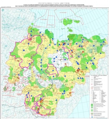 Карта фонда недр, особо охраняемых территорий, мест компактного проживания и традиционного природопользования коренных малочисленных народов Севера предоставлена Правительством Республики Саха (Якутия)