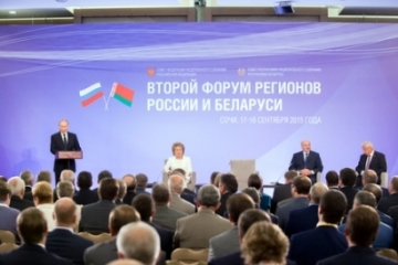 В Сочи состоялось пленарное заседание Второго форума регионов России и Беларуси. В сессии приняли участие Президент Российской Федерации Владимир Путин и Президент Республики Беларусь Александр Лукашенко.