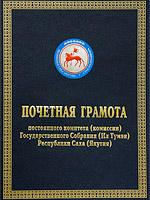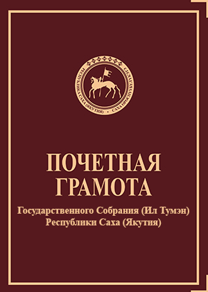 ПОЧЕТНАЯ ГРАМОТА ГОСУДАРСТВЕННОГО СОБРАНИЯ (ИЛ ТУМЭН) РЕСПУБЛИКИ САХА (ЯКУТИЯ)