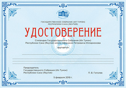 СТИПЕНДИЯ ГОСУДАРСТВЕННОГО СОБРАНИЯ (ИЛ ТУМЭН) РЕСПУБЛИКИ САХА (ЯКУТИЯ) ИМЕНИ АФАНАСИЯ ПЕТРОВИЧА ИЛЛАРИОНОВА