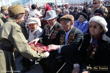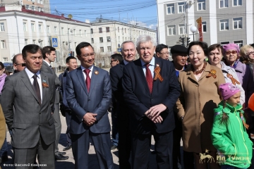 От имени Государственного Собрания (Ил Тумэн) ветеранов войны и тыла, «детей войны», горожан и гостей столицы с Днем Победы в Великой Отечественной войне, советского народа над фашисткой Германией и милитаристской Японией поздравил вице-спикер парламента Якутии Виктор Губарев.