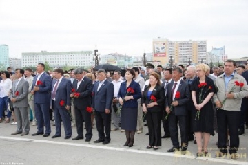 Сегодня, 22 июня 2015 года, Якутск отмечает День памяти и скорби. Ровно 74 года назад 22 июня 1941 года началась самая кровавая в истории человечества война – Великая Отечественная война. В траурном митинге и церемонии возложении цветов к монументу «Воинам-победителям» на Площади Победы Якутска приняли участие народные депутаты Ил Тумэна, члены Правительства республики, представители министерств и ведомств, руководство Окружной администрации столицы республики, руководители федеральных структур, ветераны Великой Отечественной войны и тыла, представители политических партий, общественных объединений молодёжи, учащиеся школ, жители и гости Якутска.