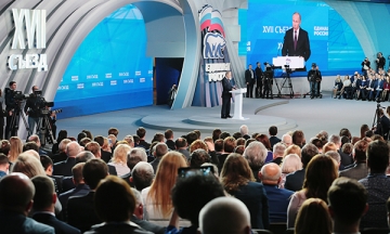 Владимир Путин заявил о том, что «Единая Россия» заслужила свое лидерство реальными делами в интересах граждан на благо наших регионов, на благо всей страны. «С очень многими в этом зале мы вместе создавали партию «Единая Россия», делали это на сложном, крайне ответственном этапе жизни нашего государства, когда стране для ее уверенного развития, укрепления государственности, решения масштабных задач нужна мощная объединяющая политическая сила. И «Единая Россия» выполнила, выполняет, продолжает выполнять эту задачу. Я хочу вас за это поблагодарить», – добавил Путин.