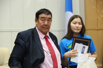 Далее народные депутаты выступили с приветственной речью. Лучшим студентам были вручены памятные подарки от имени Александра Уарова, Семена Березкина, Иннокентия Васильева и Жанны Егоровой. Встреча завершилась общим фотографированием.