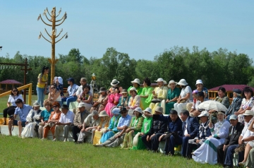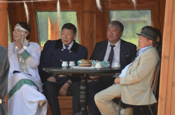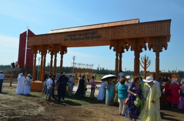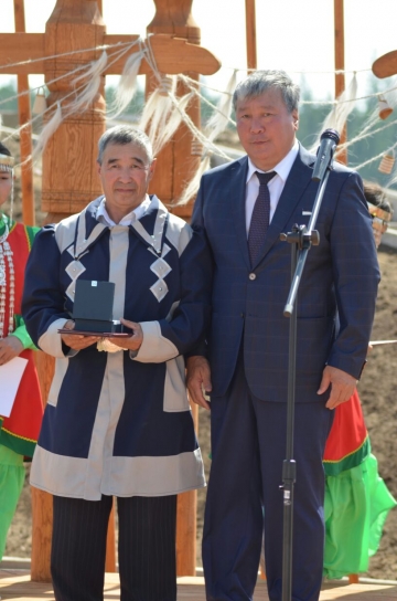Үөдэй нэһилиэгин үбүлүөйдээх ыһыаҕын аһыллыытыгар Таркаайы нэһилиэгин бочуоттаах олохтооҕо А.М. Иннокентьева алгыс сиэрин-туомун оҥордо.