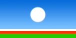 На середине голубой полосы расположен круг белого цвета. Диаметр круга составляет 2/5 ширины флага. Отношение ширины флага к его длине - 1:2." (ст.140 разд.VII Конституции Республика Саха (Якутия)
