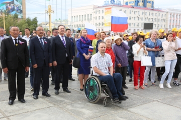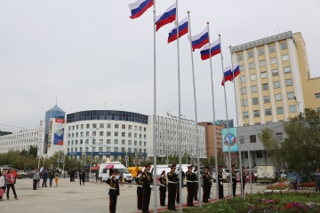 Сегодня на площади Ленина столицы Якутии состоялся праздничный митинг «Флаг российский, овеянный славой», посвященный Дню Государственного флага Российской Федерации.
