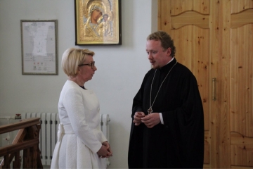 В Алдане вице-спикер посетила православный Храм и встретилась с иеромонахом Макарием, который рассказал о проводимой службе и поделился дальнейшими планами. В частности, был обсуждён проект по организации в районе православного детского лагеря.