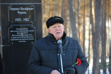 Председатель Государственного Собрания (Ил Тумэн) Александр Жирков, вице-спикеры парламента республики Ольга Балабкина и Виктор Губарев, председатели постоянных комитетов Госсобрания (Ил Тумэн) Александр Корякин, Владимир Прокопьев, Елена Голомарёва, народный депутат республики по Нерюнгринскому одномандатному избирательному округу № 18 Александр Кошуков возложили цветы к памятнику-бюсту видному советскому партийному и государственному деятелю, первому секретарю Якутского областного комитета КПСС с 1965 по 1982 гг. Г.И. Чиряеву.