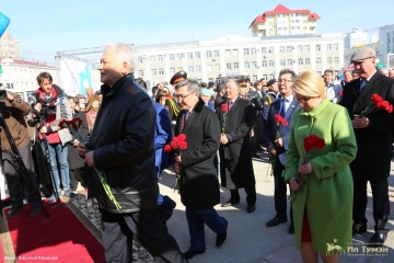 Заместитель Председателя Государственного Собрания (Ил Тумэн) Виктор Губарев и народные депутаты приняли участие в церемонии возложения цветов к памятнику-бюсту известного государственного и политического деятеля Якутии, одного из основателей Якутской автономии Максима Аммосова.