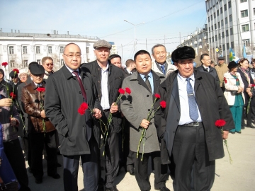 Сегодня, 27 апреля 2015 года, народные депутаты Республики Саха (Якутия), члены Правительства Якутии, представители органов федеральной исполнительной власти и органов государственной власти республики, представители делегаций Намского и Верхневилюйского улусов, общественность республики возложили цветы к памятникам основателям государственности Якутии Максиму Аммосову, Платону Ойунскому, Алексею Кулаковскому, Исидору Барахову, Степану Аржакову.