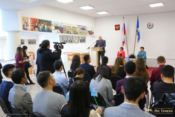 Заместитель председателя парламента Якутии Виктор Губарев провёл в здании музея урок государственности для студентов-первокурсников из десяти средних специальных учебных заведений Якутска и Намского техникума.