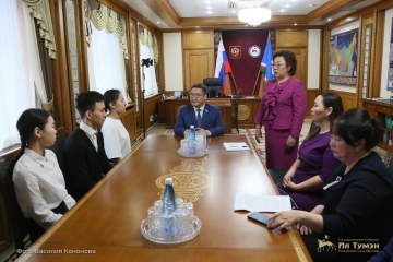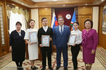 Председатель якутского парламента Петр Гоголев 21 апреля встретился с тремя победителями конкурса сочинений «Гражданином быть обязан!», приуроченного к 25-летию Государственного Собрания (Ил Тумэн).