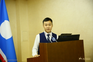 С презентацией на тему «Михаил Мегежекский – видный государственный деятель Якутии» выступил ученик 10 класса Национальной политехнической СОШ №2 Герман Тастыгин, ученик 10 класса НПСОШ №2 Дамир Игнатьев – на тему «Модель ООН как форма активизации саморазвития личности школьника».