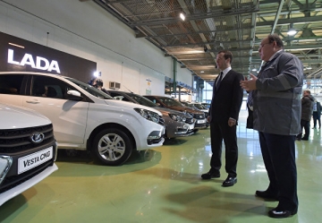 Председатель Правительства России Дмитрий Меведев в течение часа осмотрел три цеха завода и экспозиции продукции АвтоВАЗа. Он посетил цех производства двигателей и коробок передач, цех сварки автомобилей и цех сборки готовой продукции (главный конвейер).