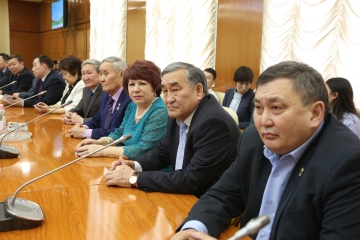 От имени Государственного Собрания (Ил Тумэн) Республики Саха (Якутия) в торжественном собрании в Зале Республики приняли участие первый заместитель председателя Анатолий Добрянцев, председатель постоянного комитета Ил Тумэна по селу и аграрной политике Дмитрий Саввин, народные депутаты республики Иннокентий Васильев, Петр Аммосов, Василий Тимофеев.