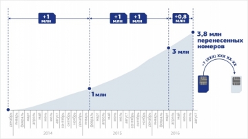 Напомним, что принцип сохранения абонентского номера при переходе от одного оператора к другому (MNP) в сетях подвижной радиотелефонной связи действует в России с 1 декабря 2013 года в соответствии с законом «О внесении изменений в Федеральный закон «О связи» и статьи 33333 и 33334 части второй Налогового кодекса Российской Федерации». Отметка в миллион перенесенных номеров была достигнута 9 февраля 2015 года. Показатель в 3 млн перенесенных номеров был достигнут уже 30 марта 2016 года.