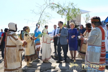 По традициям якутского и русского народа гостей угостили кумысом и караваем. Коренные жители алданской земли – представители эвенкийской общины села Хатыстыр совершили обряд приветствия «Чичипкан».