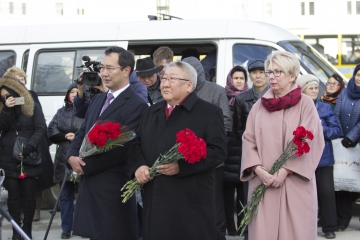 «Они стали продолжателями дела, которое было начато великими сыновьями якутской земли – Максимом Аммосовым, Исидором Бараховым, Степаном Васильевым, Степаном Аржаковым, Платоном Ойунским, цветы к памятнику которому мы сегодня возложили», - сказала вице-спикер Парламента Якутии.