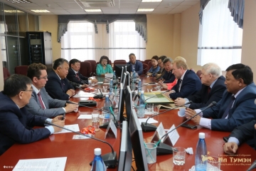 Сегодня, 26 мая 2016 года, в Ил Тумэне состоялась встреча парламентариев с делегацией Иркутской области. В состав делегации вошли заместители председателя Законодательного Собрания Иркутской области, председатель комитета по здравоохранению и социальной защите Андрей Лабыгин и председатель комитета по законодательству о природопользовании, экологии и сельском хозяйстве, президент Федерации по вольной борьбе Иркутской области Кузьма Алдаров, депутат Законодательного Собрания Аполлон Иванов, мэр Эхирит-Булагатского района Игорь Усов, мэр Нукутского района Сергей Гомбоев.