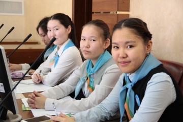 Далее участники «правительственного часа» посмотрели видеоролик по итогам фестиваля Единого детского движения «Стремление» («Дьулуур») и видеосюжет о деятельности детских общественных объединений муниципальных районов республики.