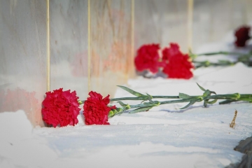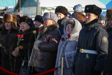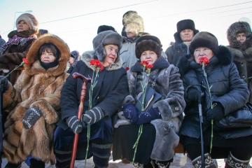 Торжественный митинг завершился церемонией возложения цветов к мемориальному комплексу "Журавли над Ильменем", посвященной 73-летию со дня гибели якутян при форсировании озера Ильмень в году Великой Отечественной войны.