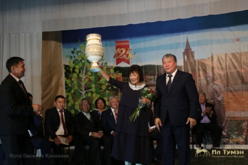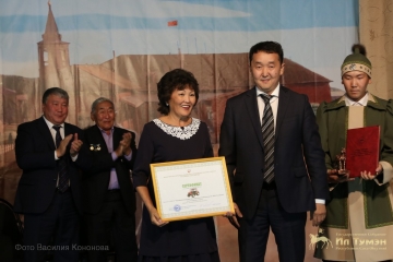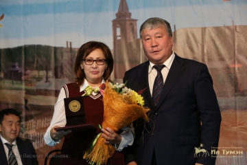 Петр Алексеев вручил за заслуги в области образования, активную общественную деятельность, вклад в социально-экономическое развитие республики и многолетний добросовестный труд знак о присвоении почетного звания «Заслуженный работник образования Республики Саха (Якутия)» директору Тандинской средней школы имени Героя Труда Михаила Готовцева Надежде Егоровой.