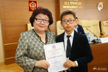 В здании парламента Якутии состоялась презентация сборника тезисов конкурсных работ студентов образовательных организаций среднего и высшего профессионального образования, учащихся общеобразовательных школ, воспитанников учреждений дополнительного образования и детских общественных организаций. Конкурс проводился при поддержке постоянного комитета Государственного Собрания (Ил Тумэн) по вопросам коренных малочисленных народов Севера и делам Арктики, поэтому председатель постоянного комитета Елена Голомарёва и член комитета, народный депутат республики, генеральный директор АО «Таба» Александр Слепцов встретились с участниками конкурса.