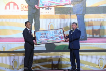 Салгыы үөрүүлээх түһүлгэҕэ Уус Алдан улууһун баһылыга Алексей Федотов уонна улууһун нэһилиэктэрин баһылыктара эҕэрдэлээтилэр. Алексей Федотов ханнык баҕарар сир-дойду, омук тумус туттар, чулуу дьонноох буолар, уйгу сирэ Уус Алдан улуу өбүгэлэрдээхпит, туруу үлэһит аҕыс геройдаахпыт, Майаҕатта Бэрт Хара саҕаттан кус-быһый уолаттардаахпыт кинилэринэн киэн туттабыт, айхаллыы ааттыыбыт диэн эҕэрдэтин саҕалаата. "Биһиги үйэбит геройа, уолбут Уйбаан Белолюбскай буолар. Кини кыайыыларыттан үөрбүт, кынаттаммыт, бүгүҥҥү үөрүүлээх күн тоҕуоруһа мустубут саха спордун сүгүрүйээччилэригэр махталбытын тириэрдэбит", - диэтэ. "Инникитин спорт туонатыттан ылбыт баай уопуккун кэнчээри ыччакка тириэрдиэн диэн эрэнэбит. Бу түһүлгэҕэ мустубут бар дьонун үтүө санаалара күүскэр күүс эптин, үрдүккэ кынаттаатын", -  диэн туран, Уус Алдан улууһун дьаһалтатын уонна бары нэһилиэк баһылыктарын ааттарыттан саха дьонун сиэринэн бастыҥ атыырдаах хас нэһилиэк аайыттан биэлээх сылгы үөрүн анаата.