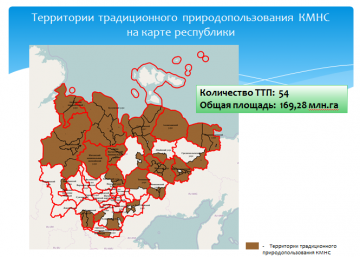 Республиканским законом устанавливается, что на основании обращений лиц, относящихся к коренным малочисленным народам Севера, и общин коренных малочисленных народов Севера или их уполномоченных представителей образуются территории традиционного природопользования федерального, регионального и местного значения. Напомним, на территории республики образовано 54 территорий традиционного природопользования. Общая площадь территории ТТП в Якутии составляет 169,25 млн га.