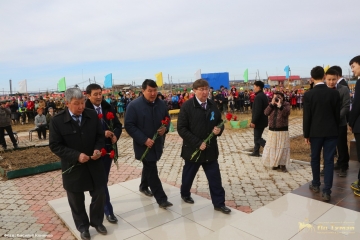 Участники митинга возложили живые цветы к памятнику видному государственному и политическому деятелю Илье Егоровичу Винокурову.